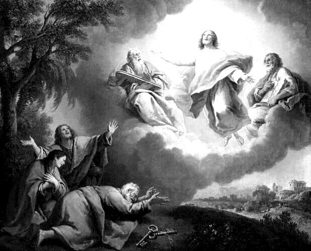Davanti a loro si trasfigura, cioè permette agli occhi dei suoi discepoli di aprirsi e di vedere oltre l’apparenza umana la luce divina che si nasconde ai distratti e ai superficiali. Il mistero di Cristo è il contatto dell’eternità con la storia, con un preciso istante. I tre testimoni comprendono che Gesù è il Messia atteso da sempre, vedendo il passato, Mosè ed Elia cioè la Legge e i Profeti, che sono accanto a lui e parlano del futuro.