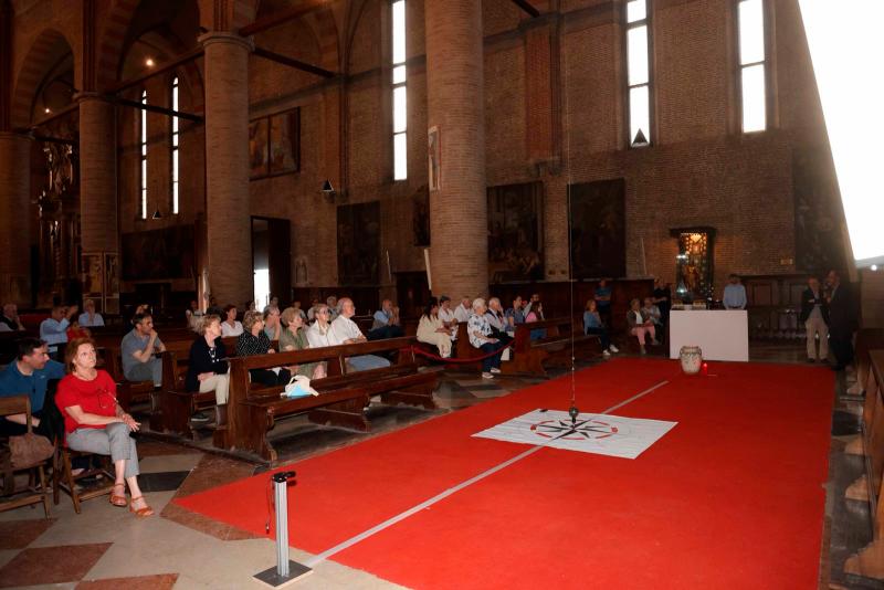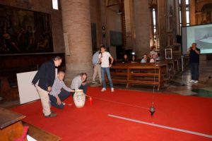 Prove generali di un grande esperimento, all’interno della chiesa di San Nicolò, dove, venerdì 6 giugno, è stato attivato il pendolo di Foucault, dispositivo con il quale, il fisico, nel 1851, a Parigi, ha dimostrato la rotazione terrestre. L’idea è nata dalla collaborazione tra l’Ateneo di Treviso e il museo Scarpa del Seminario, attualmente chiuso, ma custode del pendolo con cui l’esperimento era stato replicato in città per la prima volta, proprio dal Seminario, nel 1912.